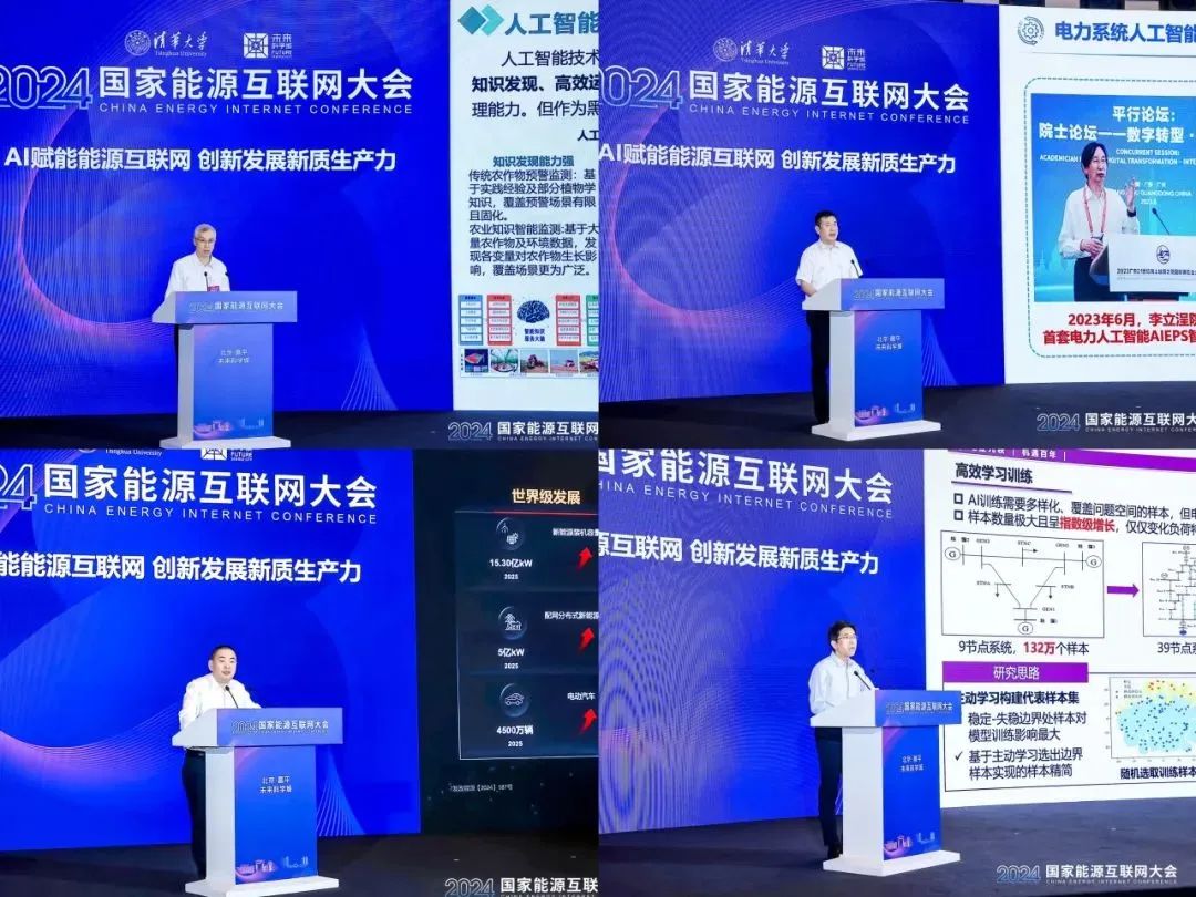 在大会主题报告环节中,国家电网国家电力调度控制中心副主任李丹,南方电网新型电力系统(北京)研究院执行董事、院长李鹏,华为公司副总裁、电力数字化军团CEO孙福友,日本a片电机系长聘教授、副主任陆超分别做了《AI赋能新型电力系统调度运行》《电力系统人工智能基础模型的研究与展望》《算三本账,加速能源行业数字化、智能化》《电力系统稳定分析控制中人工智能的应用与挑战》的主题报告。各位专家齐聚一堂,共同探讨“双碳”目标背景下我国能源互联网产业和技术创新发展大计。