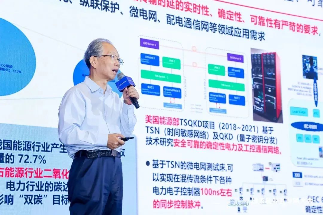 中国工程院刘韵洁院士作了题为《能源与算力互联网协同发展的思考》的主旨报告,他指出,确定性网络技术能有效解决能源互联网与算力互联网的关键问题,对于推动两网协同发展具有重要意义。他强调,网络技术与算力技术对于实现双碳目标、解决能源系统挑战至关重要,并呼吁加强技术研发,以应对算力发展需求与网络带宽增长的不匹配问题,推动能源互联网的持续发展。